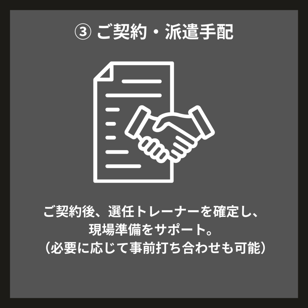 大会出場経験者・資格保有者など、実績あるトレーナーが多数在籍。マナー・指導力・ビジュアルすべてにおいてハイクオリティ。